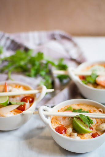 Coconut milk, thai curry paste, lime juice and lemongrass all combine to make a soup that is surprisingly life changing.